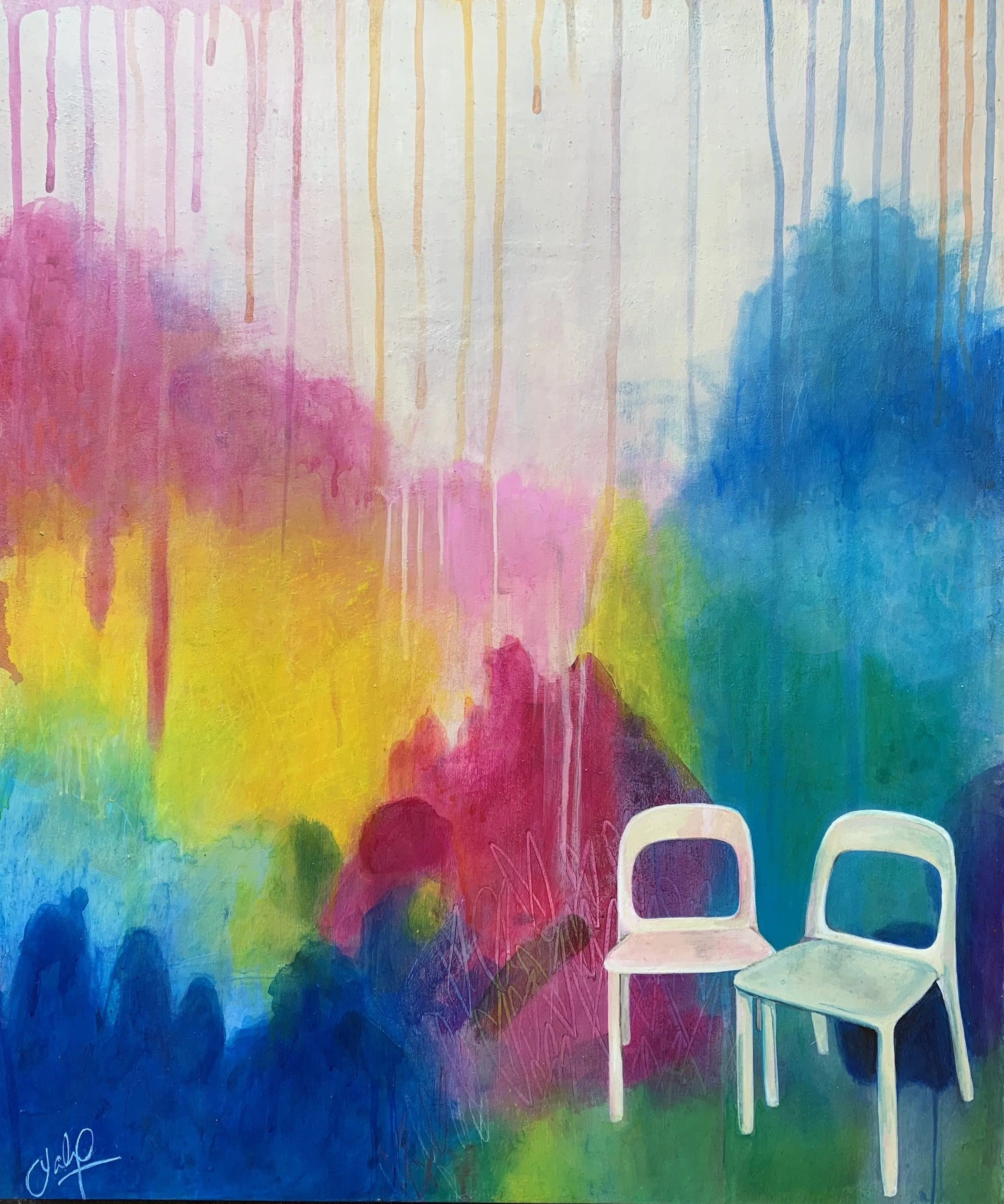 Feeling Like Wonderlan, acrylic on wood cradle, 24" x 36" $1200