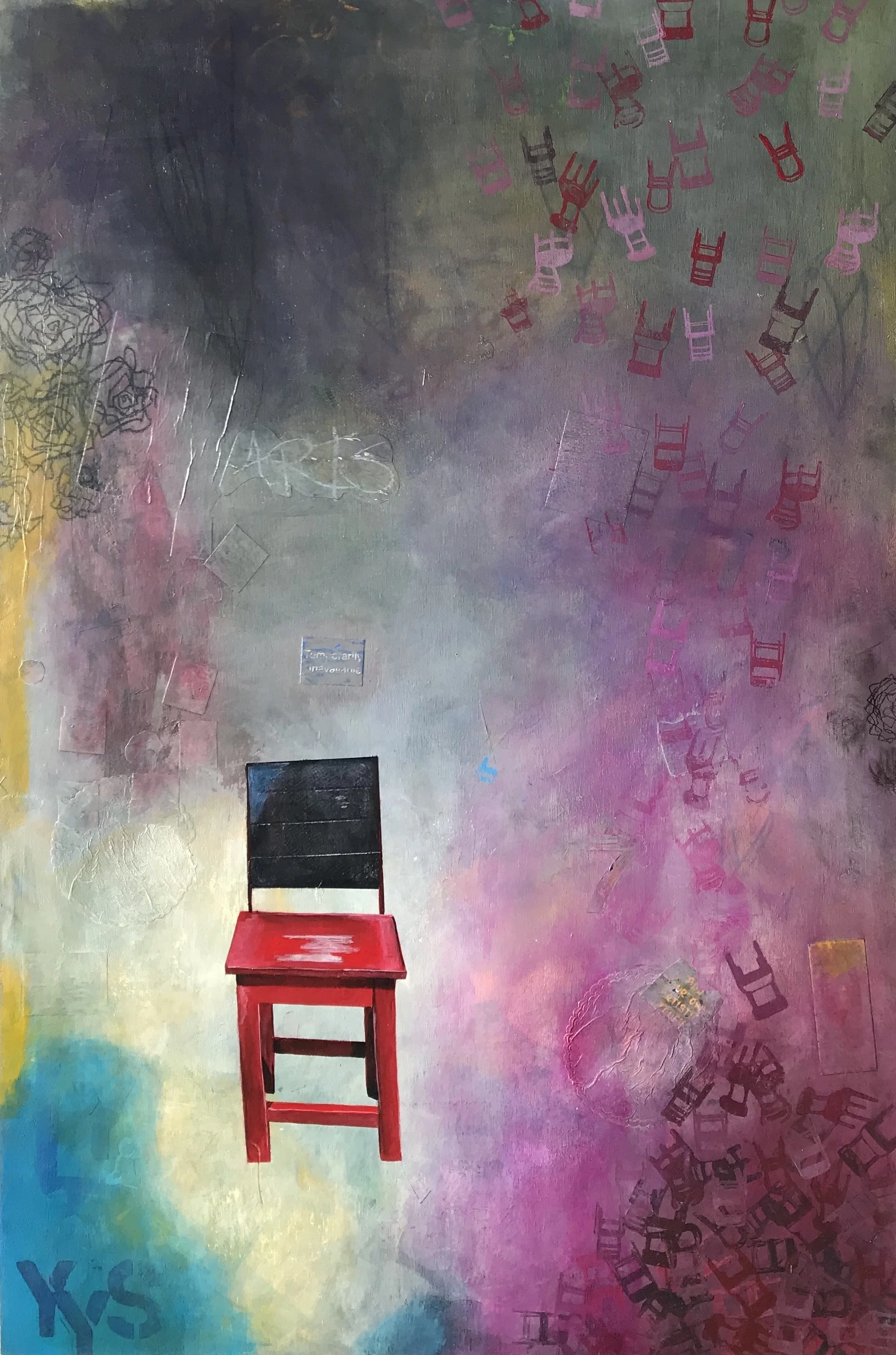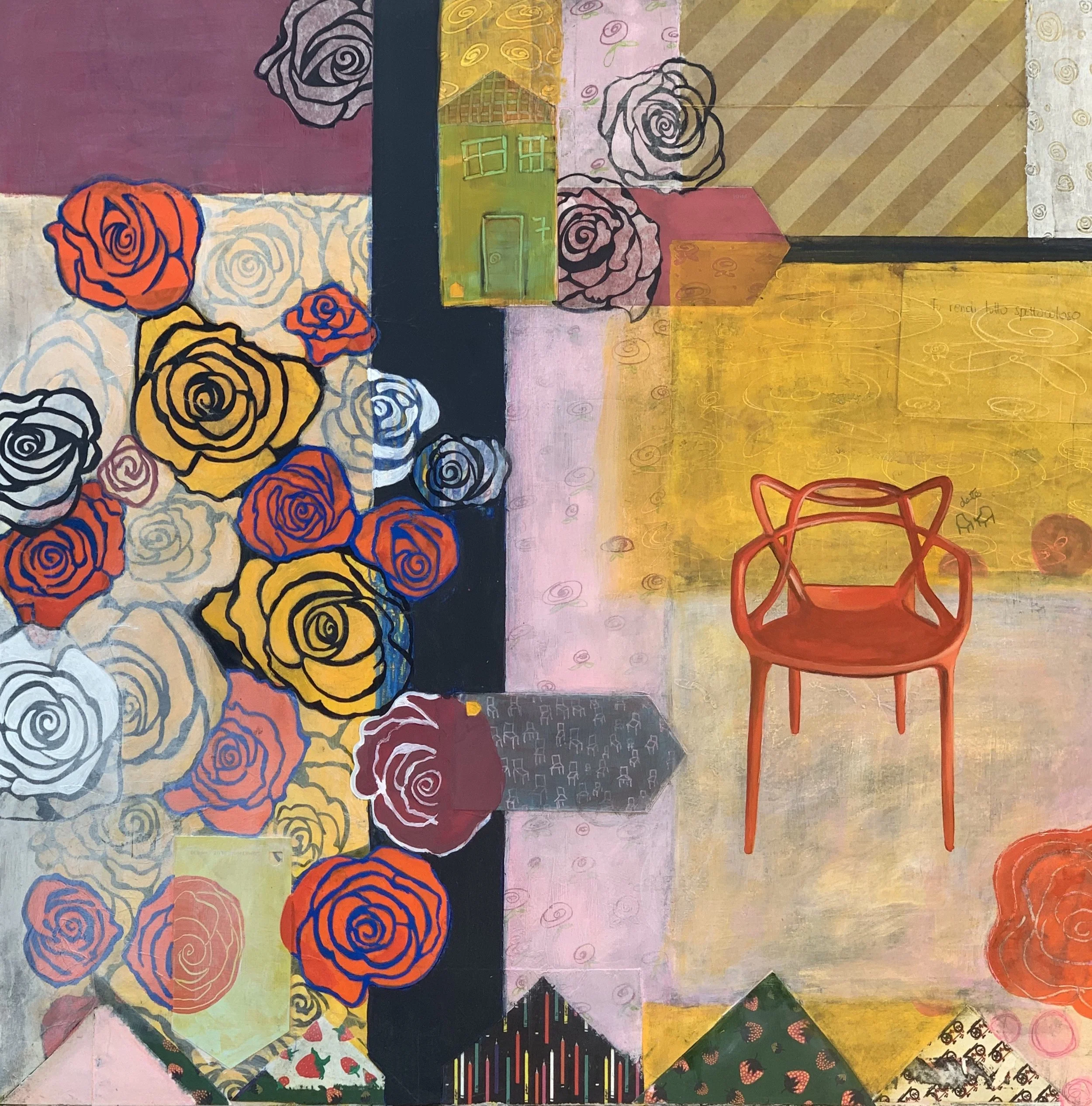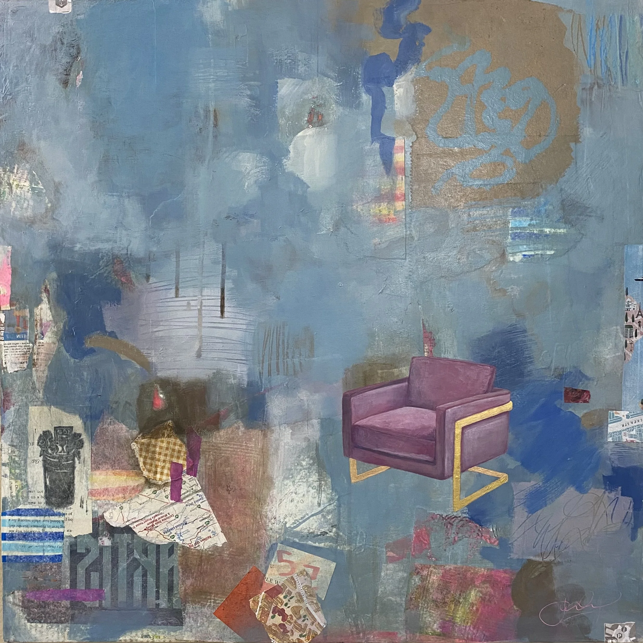 Chic Vagabond, acrylic and mixed media on wood cradle, 24" x 24" $865
